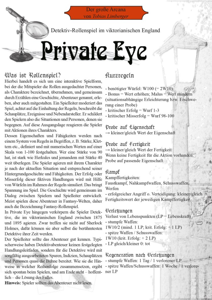 Zum sofortigen Losspielen sind Kurzregeln und vier Beispielcharaktere enthalten.